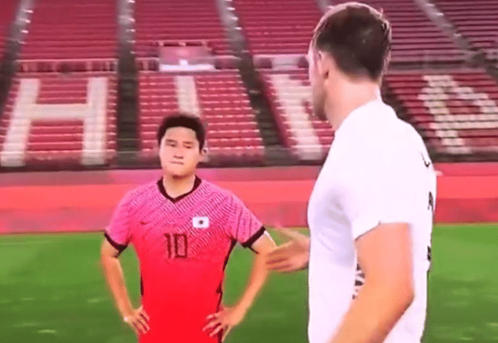 本场比赛也是出现了十分有争议的一幕,本场比赛进球的新西兰球员克里斯伍德过来打韩国队的球员李东炅,李东炅则是十分的沮丧,他并没有理会过来的克里斯伍德,克里斯伍德稍显尴尬地微笑着离开了,这也成了为本场比赛的一大热议点,奥运精神那去了,我们输掉了比赛,也失去了礼貌,韩国媒体也是对李东炅进行了批评。前韩国名脚安贞焕在解说时说道:他的举止有点令人失望。前韩国国脚金亨日则是说道:我理解作为一名球员输球当时的心情,但拒绝与对方握手是一个很令人遗憾的行为。