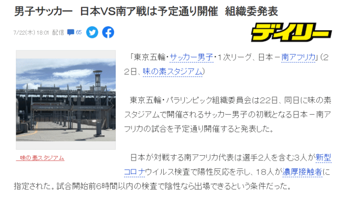 根据此前的报道,在7月18日南非男足2名运动员和1名工作人员检测呈阳性,3人立刻遭到隔离。与此同时,18名密切接触者也被隔离。而南非男足奥运会的首个对手,正是东道主日本男足。当时,日本媒体报道这场比赛不排除任何选项,包括不进行。