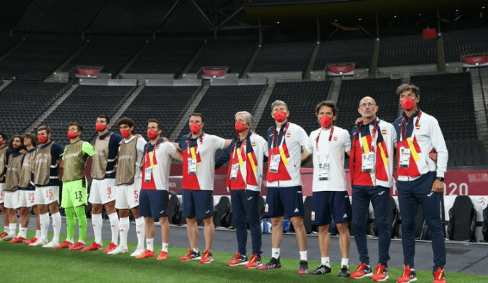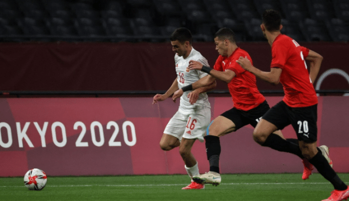来源:直播车07-22 19:28直播车讯 7月22日,奥运会男足小组赛第一轮结束了一场焦点战,西班牙国奥0-0闷平埃及国奥。比赛中明格萨和塞巴略斯伤退,双方均未破门,作为拥有奥尔默、托雷斯、佩德里的西班牙国奥很遗憾没有拿到开门红。