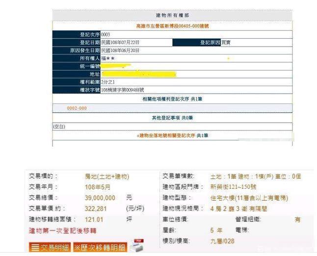 同年的5月,福原爱在台南买下了一处面积121平总价值892万人民币的住宅,此处住宅的所有人只登记了福原爱。