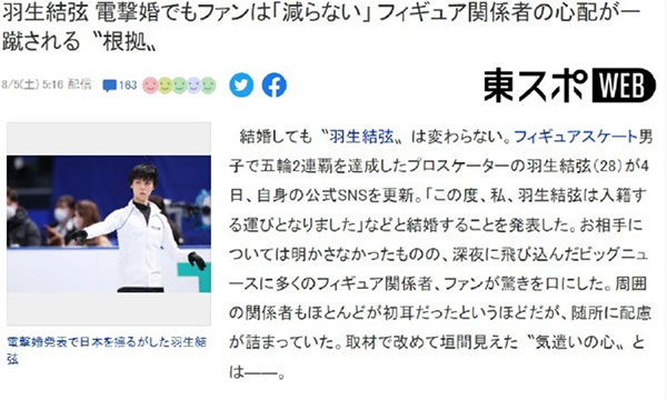 日媒解读羽生结弦大婚!爱人成最高机密,后续影响: 不会掉粉