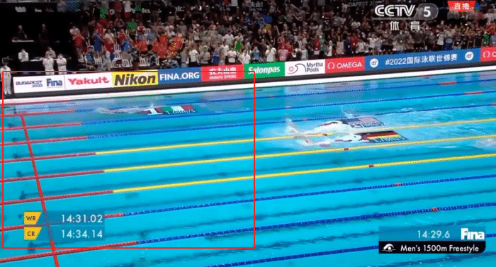 而这场比赛还有一个悬念,帕特里尼耶里在前1400米,都压着世界纪录的红线。而世界纪录保持者,就是中国选手孙杨。孙杨在2012年伦敦奥运会,创造14分31秒02的新世界纪录夺得奥运金牌。1400米转身过后,帕特里尼耶里依然领先世界纪录超过一个身位。但最后100米,世界纪录红线开始疯狂加速。