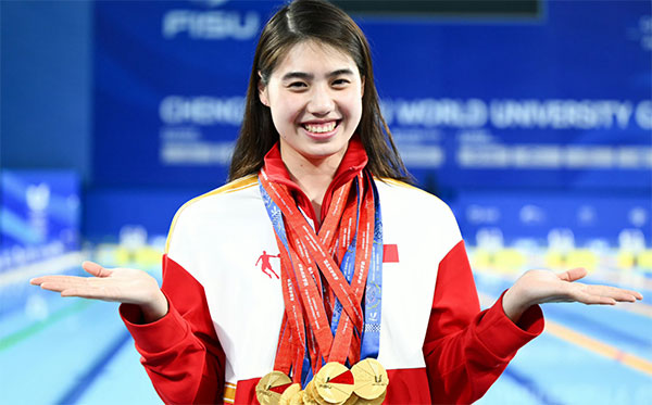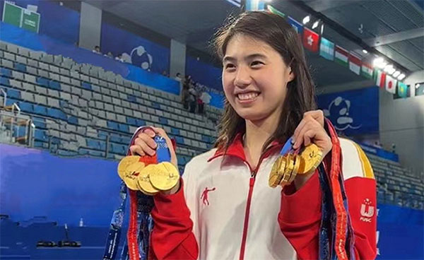 豪横!张雨霏戴9枚金牌合影,7天8次打破纪录,获赠新外号