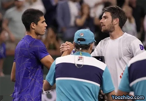 第二盘,阿尔卡拉斯在第3局又是先丢掉发球局,不过之后连赢三局4-2扭转劣势,并最终以6-3再下一城,从而两盘击败卫冕冠军诺里,首次挺进IW男单四强。