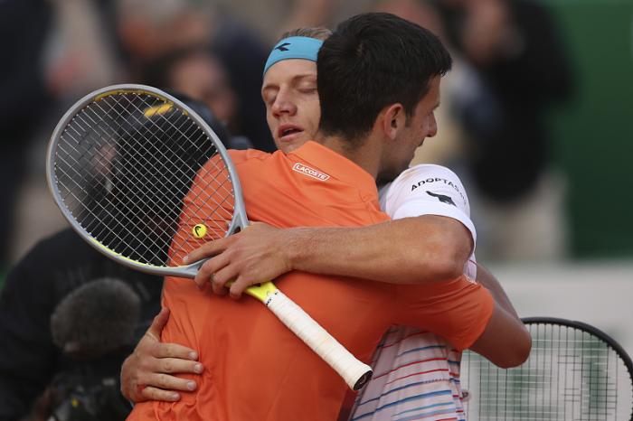 事实证明,福基纳比德约科维奇准备得更好。他以6- 3,6 -7(5)和6-1获胜。“我需要从一开始就有信心,”福基纳说。“我打得非常好。我的教练告诉我,‘专注于每一个点,因为你能做到。’”随着福基纳在最后时刻变得越来越强,德约科维奇最终输掉了这场比萨。这一天,他被破发九次,这是他在三盘两胜的比赛中被破发最多的一次。赛后,德约科维奇表示,他认为自己可以在第一盘后卷土重来,并尽可能地留在场上,但“从比赛的角度来看,从身体上来说,我离我的最佳状态还很远。”去年,德约科维奇在蒙特卡洛第三轮输给了埃文斯,但最终赢得了法网。所以对于他来说,恐慌是不必要的。不过这场比赛对于德约科维奇来说,或许也是一场及时的警钟。