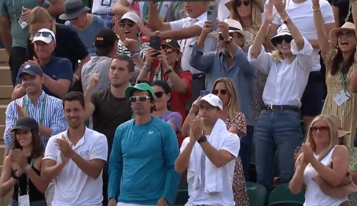 决胜盘,双方前两局互破发球局。接着,两人各自保住发球局,比分来到5-4,德米纳尔领先。第10局,德米纳尔一度40-15手握两个赛点。但加林顽强化解,艰难保发。双方各自保发后,比赛来到决胜盘抢十。抢十中,德米纳尔再度错失5-3领先的优势,被对手连得6分拿到赛点。最终,加林把握机会拿下抢十,3-2赢下这场鏖战!他掩面庆祝,全场观众也起立祝贺。