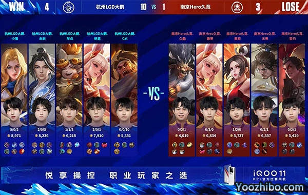 直播车讯 北京时间04月05日,KPL春季赛S/A卡位赛拉开帷幕,首场比赛在南京Hero久竞和杭州LGD大鹅之间上演。
