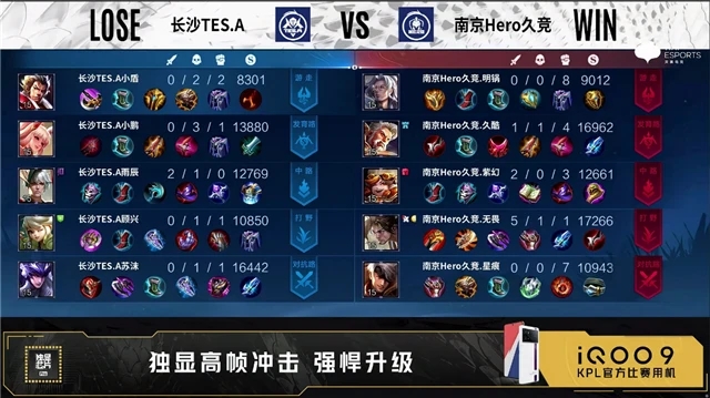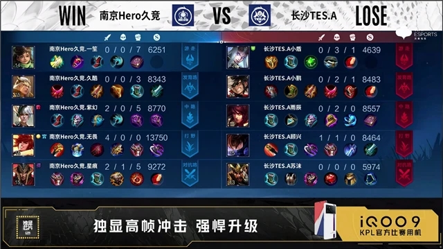 直播车讯 北京时间7月9日2022年KPL夏季赛常规赛第二轮第二周第四日第一场,由南京Hero久竞对阵长沙TES.A,以下是本场比赛快讯: