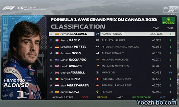 直播车讯 北京时间6月18日,2022年F1加拿大大奖赛三练结束,整个三练在大雨中进行,最终阿尔派车队名将阿隆索以1:33.836的成绩排在第一!加斯利第二,维特尔第三!法拉利车队的勒克莱尔由于超额更换动力单元部件正赛将从队尾起步,他在三练中没有做出有效成绩。中国车手周冠宇表现出色,排在了第12名。