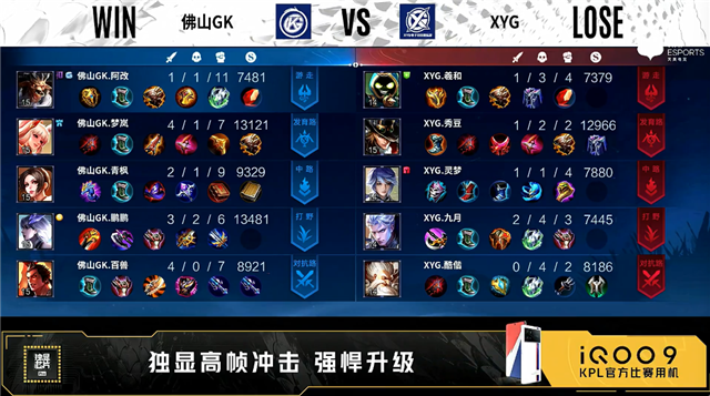 直播车讯 北京时间4月29日2022年KPL春季赛季后赛败者组半决赛,由佛山GK对阵XYG,以下是本场比赛快讯: