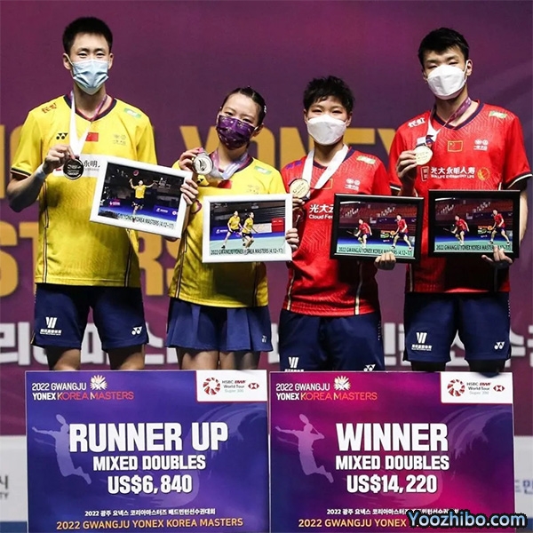 直播车讯 2022韩国羽毛球大师赛在4月17日进入到决赛日,在首场混双决赛中,奥运冠军王懿律/黄东萍21-17 21-17击败队友欧烜屹/黄雅琼,拿下2022赛季首个冠军。
