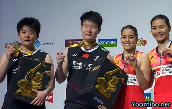 直播车讯北京时间10月15日,北极站羽毛球公开赛决赛女双比赛中,刘圣书/谭宁直落2局击败了二号种子宗空潘/拉温达,夺得冠军,本赛季第3次夺冠,未来可期。比分为21-13、24-22。