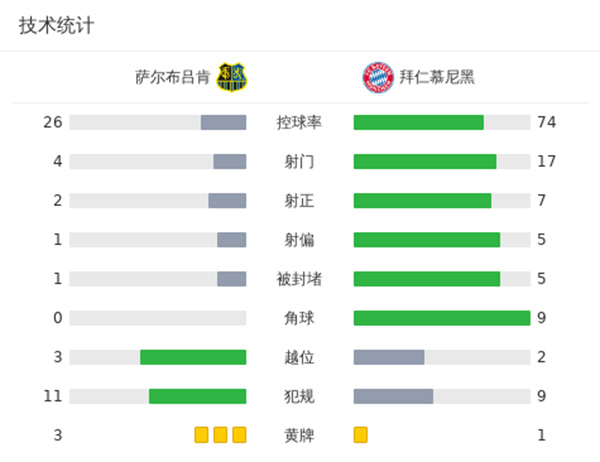 拜仁1-2萨尔布吕肯 德里赫特伤退