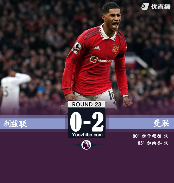直播车讯 北京时间2月12日晚上22:00,英超联赛第23轮,曼联客场挑战利兹联。上半场,马奎尔回传失误险送礼,B费失单刀。下半场,达洛特中框,卢克-肖助攻拉什福德破门,加纳乔一条龙。全场结束,曼联2-0利兹联,超出少赛2场的曼城1分,排名积分榜次席。