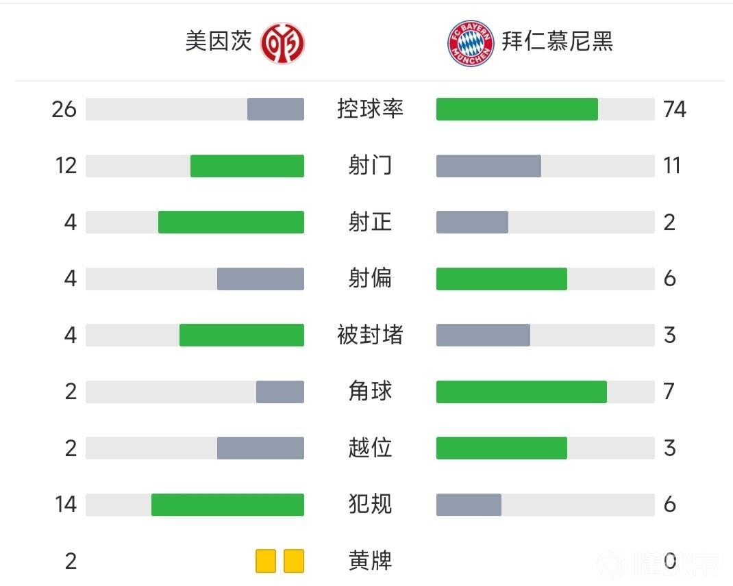 全场结束,拜仁1-3美因茨,连续两轮不胜。