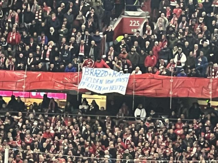 而或许是对于欧冠出局的失望,愤怒的拜仁球迷也在看台上直接挂出了横幅,表达对球队两位高层萨利哈米季奇和卡恩的不满。横幅中写道:“萨利哈米季奇+卡恩,曾经的球队英雄,如今的输家。”