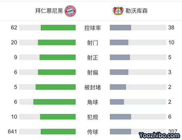 全场比赛结束,拜仁慕尼黑4-0勒沃库森!