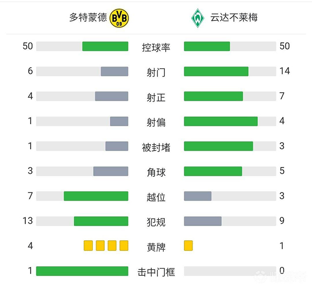 第46分钟,布兰特前场右路带球内切后起脚低射将球打进近端死角,多特蒙德1-0不莱梅。