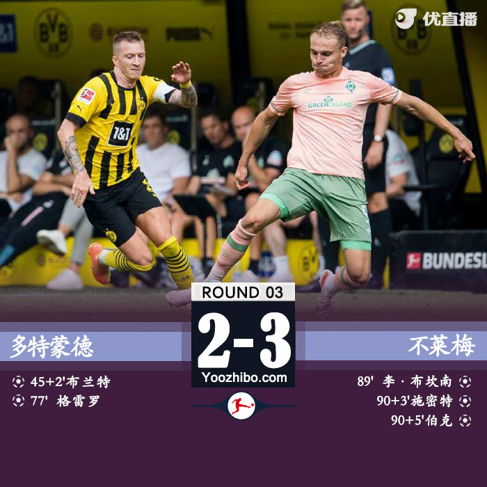 多特蒙德2-3不莱梅 多特最后5分钟连丢三球