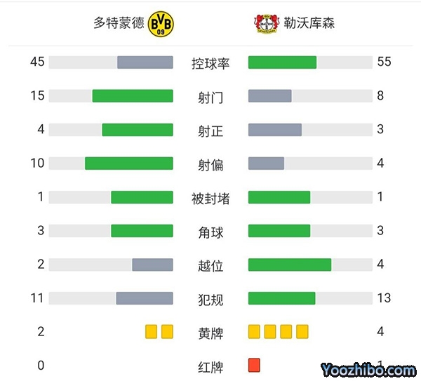 全场比赛结束,多特蒙德1-0勒沃库森!