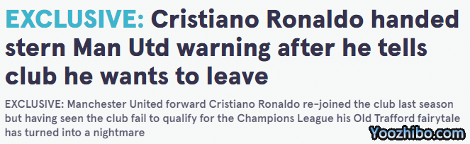 另外《镜报》指出,曼联方面立场坚定,他们不会出售C罗,俱乐部希望这位葡萄牙球星履行完自己的合同。