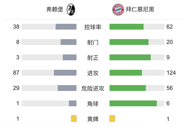 第81分钟,于帕梅卡诺后场精准长传,科曼内切一步直接抽射近角破门,弗赖堡1-3拜仁!