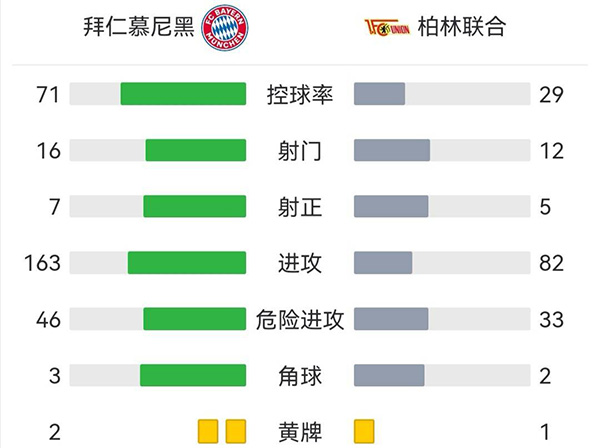 全场比赛结束,拜仁4-0大胜柏林联合。