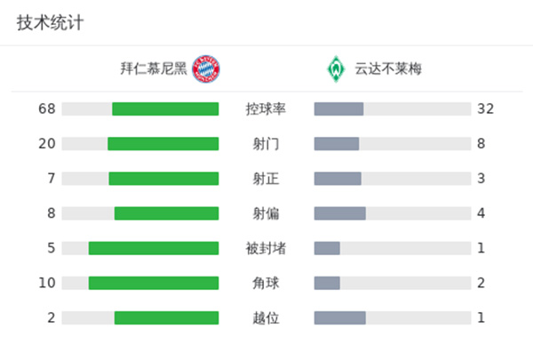 拜仁替补未出场:26-乌尔赖希、15-戴尔、41-克雷茨格、45-帕夫洛维奇、34-兹沃纳雷克