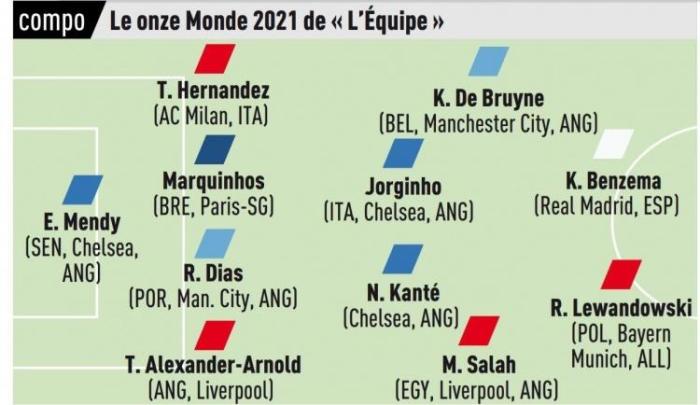 直播车01月05日讯 ,《队报》评选了2021年最佳阵容,其中本泽马、莱万搭档双前锋,梅西、C罗无缘入选。