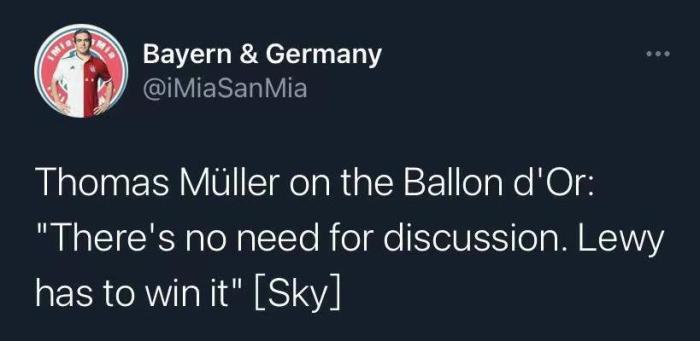 直播车11月29日讯 拜仁主场1-0战胜比勒费尔德。赛后,拜仁球员穆勒接受了天空体育的采访并谈到了金球奖相关话题。