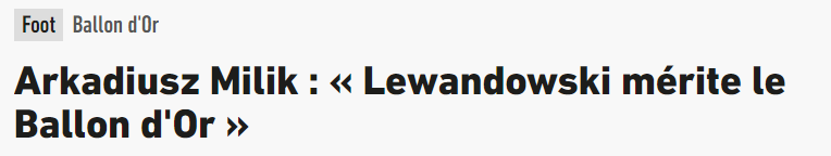 直播车11月27日讯 近日,波兰前锋米利克在接受《队报》采访时表示,莱万配得上赢得今年的金球奖。