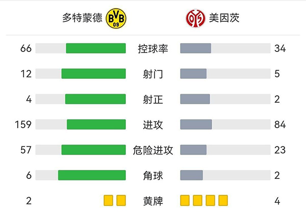 开场仅仅3分钟,多特打穿美因茨左路防线,穆尼耶传中,美因茨球员解围不远,罗伊斯迎球直接抽射破门,多特1-0领先美因茨。