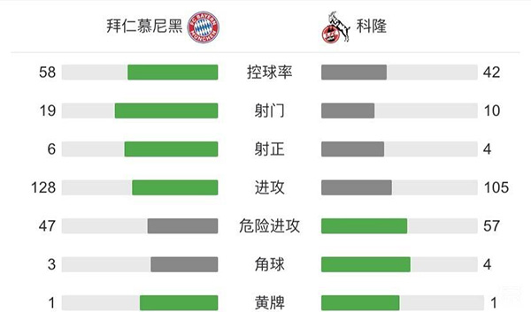 最终全场比赛结束,拜仁慕尼黑3-2科隆。