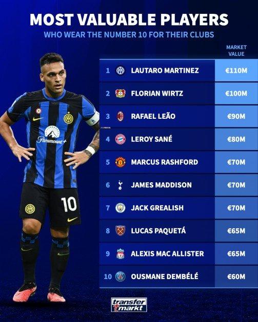 现役10号球员身价Top10: