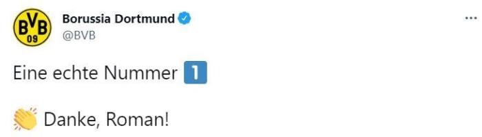 多特官方也对魏登费勒的举动表示赞赏和骄傲,他们写道:真正的1号,谢谢你罗曼!!