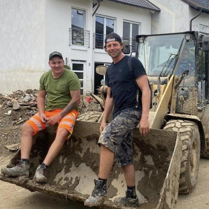 多特官方晒出了魏登费勒在抗洪现场和工作人员的合影,魏登费勒的鞋和裤子上已满是泥泞。