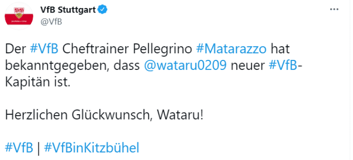 官方:日本国脚远藤航出任斯图加特队长