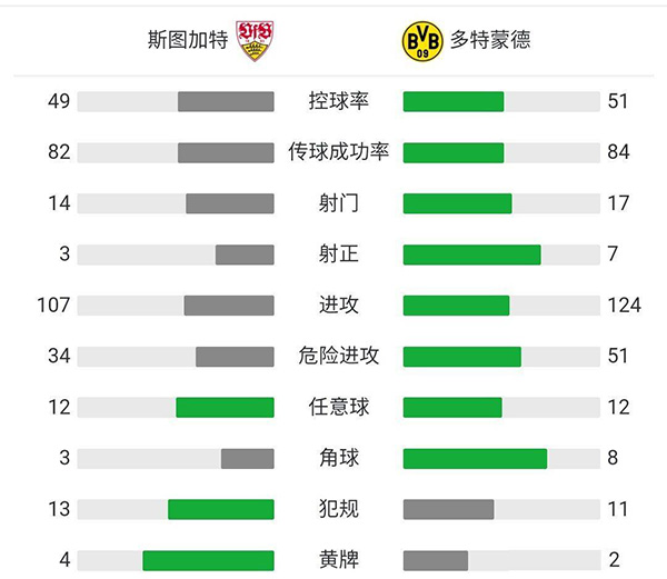 全场比赛结束,多特3-2击败斯图加特。