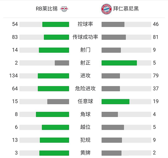 全场比赛结束,拜仁1-0击败RB莱比锡。