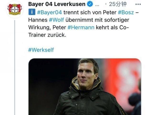 来源:直播车03-23 19:51直播车3月23日讯 ,德甲老牌劲旅勒沃库森俱乐部官方宣布解雇球队的荷兰籍主帅博斯,同时离开的还有他的两名助教和体能教练。而在解雇博斯的同时,勒沃库森也确定了球队的新任主帅,那就是德国U18男足的少帅沃尔夫,39岁的他将会执教勒沃库森至本赛季结束,此前沃尔夫曾在德国足协任职,并且执教过斯图加特、汉堡和根克队。此外俱乐部前球员和前主帅彼得-赫尔曼,将担任助教。