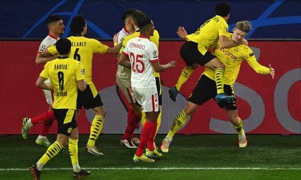 来源:直播车03-10 19:55直播车讯 在北京时间3月10日凌晨结束的欧冠16强淘汰赛一场焦点大战中,德甲劲旅多特蒙德在主场以2比2战平塞维利亚,从而以总比分5比4淘汰对手晋级八强。而本场比赛,效力于多特蒙德的挪威天才哈兰德,再次度过了疯狂的一夜,梅开二度的他一举创造了欧冠四大神纪录。