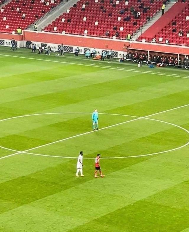 的比赛,转播镜头再次捕捉到拜仁门将诺伊尔站在中圈点看球。