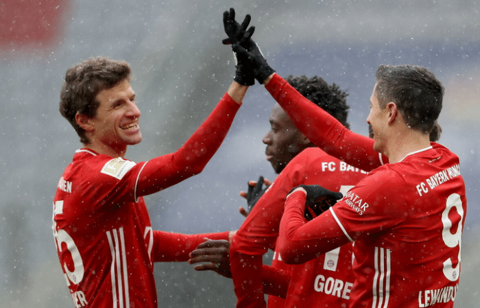 拜仁的其他球员也都保持很好的竞技状态,托马斯-穆勒也很高效,各项赛事28场打进了12球助攻10次,萨内有7球5助,金斯利-科曼5球10助,格纳布里5球1助,舒波-莫廷3球;中场的基米希拿出巅峰状态,18场4球12助,4-0大胜沙尔克04的比赛中他完成了助攻帽子戏法,拜仁的整个中前场表现可以说美如画,后防线的阿拉巴、聚勒、诺伊尔等人也保持稳健的状态。