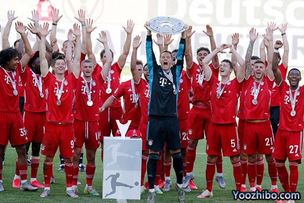 来源:直播车06-29 20:32 北京时间06月27日结束的德甲第34轮的比赛中,拜仁以积分82分排名第一,比第二名的多特蒙德高出13分,拜仁获得2019-2020德国甲级联赛冠军,而这一个德甲冠军也是拜仁历史上第29个德甲冠军。同时拜仁也完成了德甲八连冠,上一次德甲有拜仁以外的球队夺冠还是多特。排名第18的帕德伯恩跟排名第17的杜塞尔多夫下个赛季降级为乙级联赛,德乙排名第一,第二的比勒菲尔德跟斯图加特直接晋级下赛季的德甲联赛。德甲排名第16的云达不莱梅将跟德乙排名第三的海登海姆进行附加赛,胜者进入下赛季甲级联赛,败者进入乙级联赛。