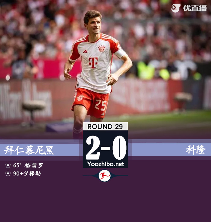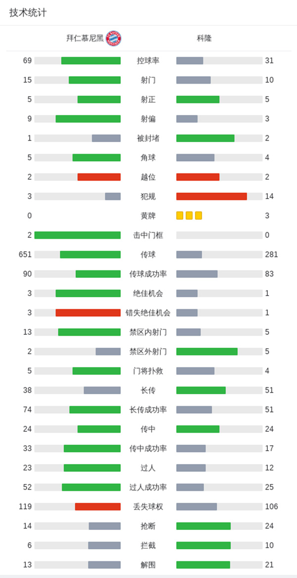 最终,拜仁2-0科隆。
