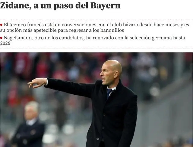 齐达内即将执教拜仁?世体:双方已基本谈妥