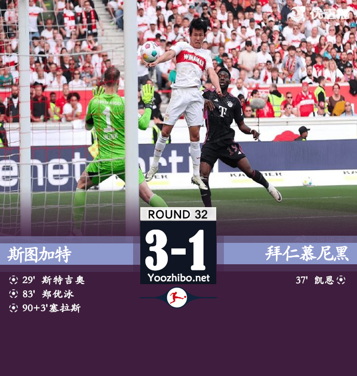 最终,拜仁客场1-3不敌斯图加特。