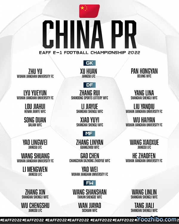中场:姚凌薇、张琳艳、王晓雪、王霜、高晨、何召芬、李梦雯、姚伟