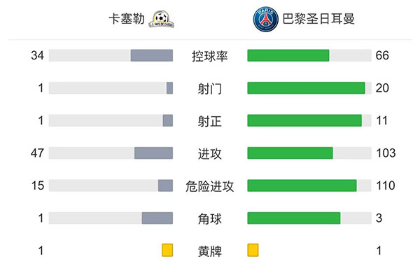 全场比赛结束,最终巴黎圣日耳曼7-0卡塞尔,顺利晋级16强。