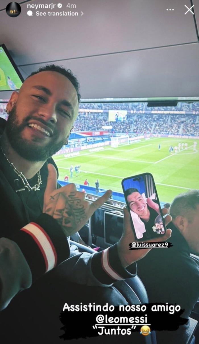 不仅是这位小球迷,同样在看台观战的巴西巨星内马尔,也通过自己的方式声援梅西。内马尔一边观看巴黎的比赛,一边与前巴萨好友苏亚雷斯视频通报。内马尔还晒出自己与电话中的苏神的合影,并且动情写道:“一起看我们的朋友梅西踢球!”